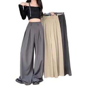 女性のためのハイエンドのドレープグレーのスーツパンツ春の新しいハイウエストストレートワイドレッグパンツカジュアルパンツフロアレングスパンツ