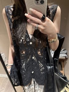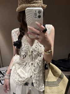 オールドマネースタイル中空織りベスト 2025 夏の新多用途カーディガン V ネックニットベストトップ女性