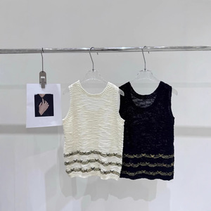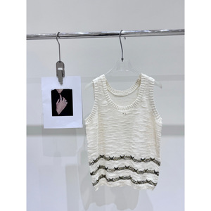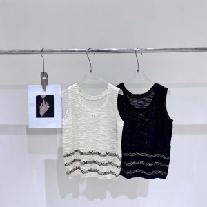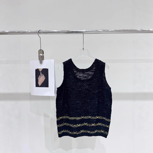 25年夏の新作フレグランスロゴストライプとゴールドラインニットノースリーブプルオーバーベスト、ゆったりと万能なレディーストップス