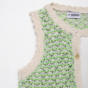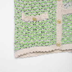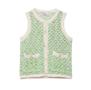 貿易婦人服 25 新しい夏スタイルのコントラストのある質感のノースリーブラウンドネックニットベストベスト 3991014