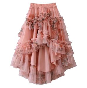 フレンチリゾートスタイルのヘビーデューティー立体レースチュチュスカートフリル花柄スカート不規則なメッシュスカート女性用