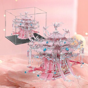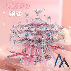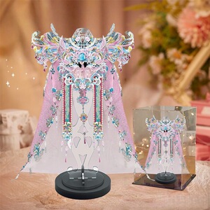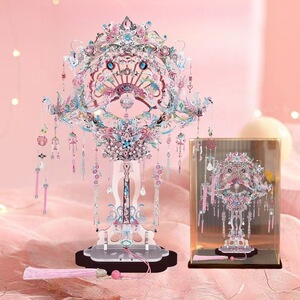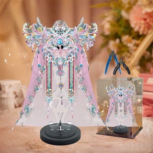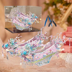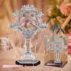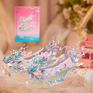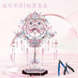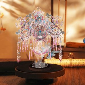 Gangda ピンクシルバー鳳凰の冠結婚式ファン金属組み立て装飾品立体パズル手作りギフトガールフレンドギフト