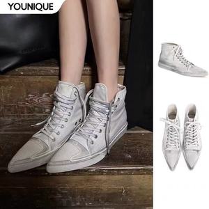 2025 新しいニッチデザインカジュアルインナー高さ増加キャンバスシューズ女性の夏のポインテッドトゥレースアップハイトップスニーカーダーティーシューズ