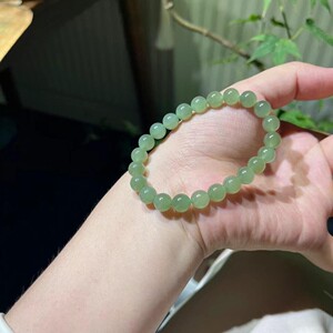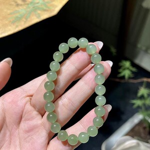 和田玉手链批发 青海料圆珠 8mm手串晴水色 湖水绿手串天然葡萄石