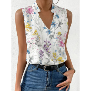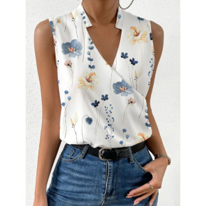 2023 夏の貿易クロスボーダー新しい女性のプリント V ネックトップシャツヨーロッパとアメリカのフレンチデザインシャツ
