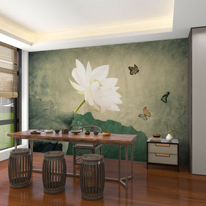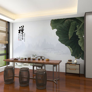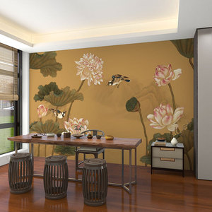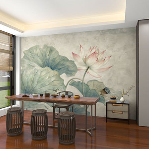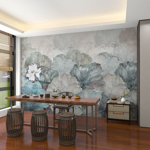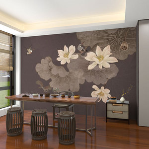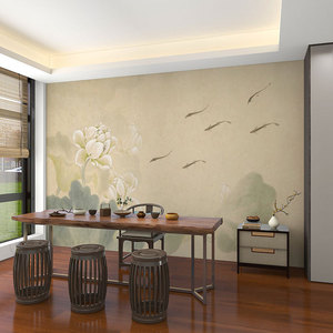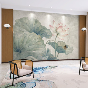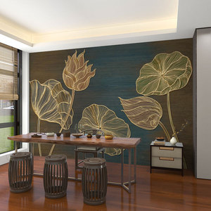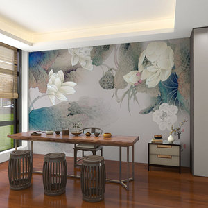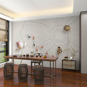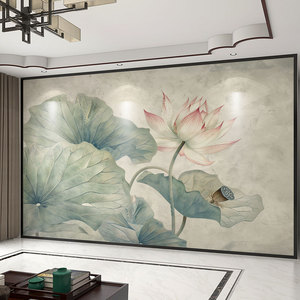 壁画3d立体中式意境荷花电视背景墙壁纸客厅壁布装饰墙布墙纸