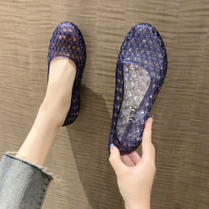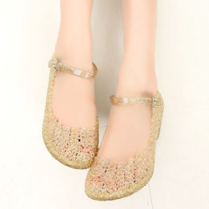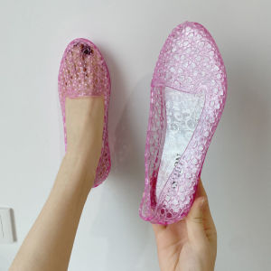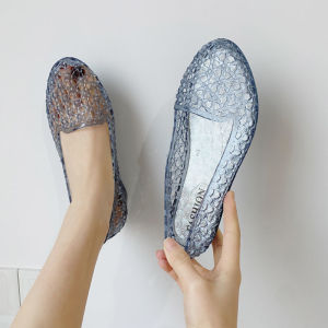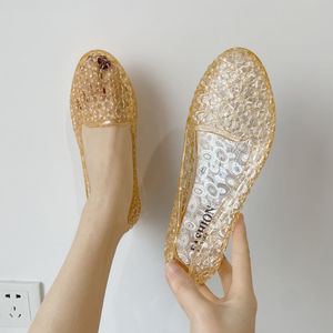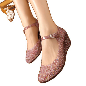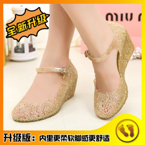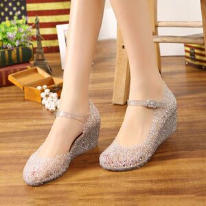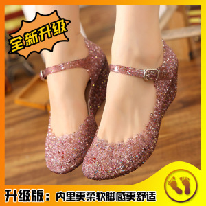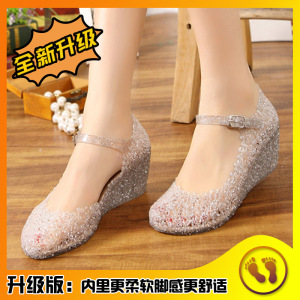 クリスタルサンダル女性の夏のファッションアウターウェア中空ウェッジヒールノンスリップ下駄 2025 新しい靴ビーチシューズ