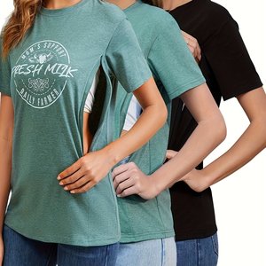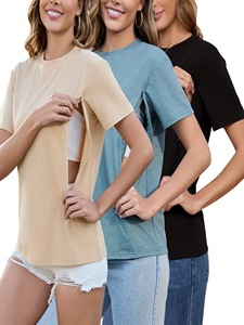 授乳用隠しボタン付きレディース授乳シャツ3枚組