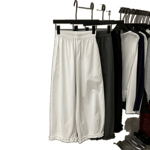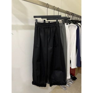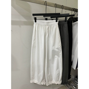 木耳花边高腰阔腿裤女2025春秋九分裤松紧腰显瘦直筒灯笼休闲裤
