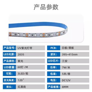 低電圧UV紫外線ライト、自己粘着式2835、紙幣検証、殺菌消毒、蛍光LEDライトストリップ、紫光ライトストリップ