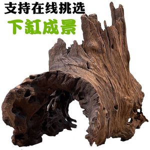 沈木紫チーク水槽造園カメサンディング台瞬間沈没木の切り株小さな木の枝天然アーチ橋中空水槽