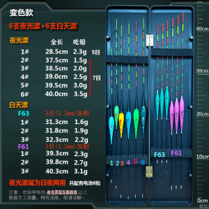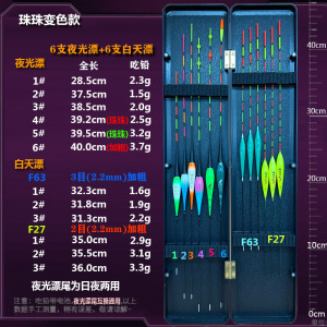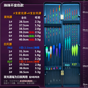 夜光フロート6本+昼光フロート6本、昼夜両用セット、鯉・フナ総合目立つ釣りフロート