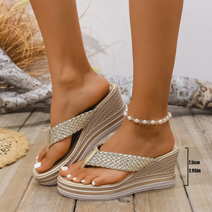 2025夏季新款夹趾编织人字拖大码欧美厚底松糕跨境凉拖鞋女外贸