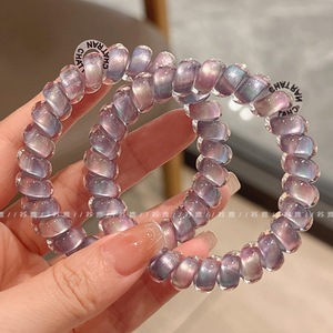 ヘアアクセサリー、シームレスオーロラ、耐久性のある紫色のゴムバンド、女性用ヘアゴム、多用途、高品質、夏用電話コードヘアゴム、新鮮なヘアロープ