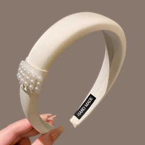 Zhao Lusiと同じスタイルの小さな香りのよいパールサテンスポンジヘッドバンド、ハイエンドでファッショナブルなヘッドバンド、ハイヘッドヘアアクセサリー