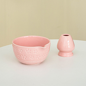 新しい和風抹茶桜ボウル、注ぎ口付きセラミックピンク茶筅ティーツールの越境専用 Amazon
