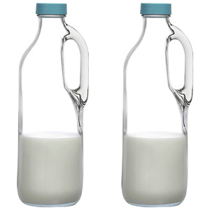 カスタマイズされたロゴクロスボーダーホット販売密封ミルクボトルハンドル付き透明ガラスジュース飲料ボトル漏れ防止蓋付き