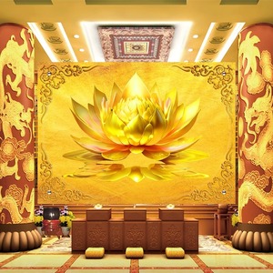 金色莲花荷花墙纸布佛字背景禅意莲花壁画禅房寺庙佛堂家壁纸