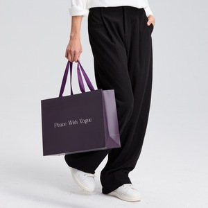 高級パープルショッピングバッグ包装袋カスタム衣料品店ハンドバッグ紙袋ロゴ婦人服店子供服シンプルイン