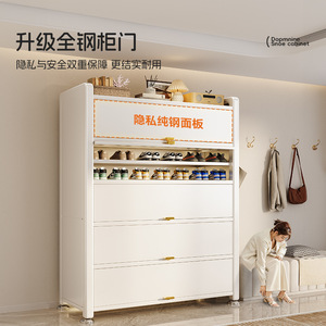ドア付きスチール製シューズキャビネット、家庭用玄関収納キャビネット、一体型壁掛け大容量多機能収納キャビネット