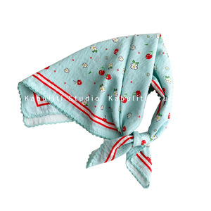 女の子用の青い小さな正方形のスカーフ、三角形の包頭日焼け止め、首の保護、ネックバンド、ヘアバンド、ガーゼスカーフ、薄いスカーフ