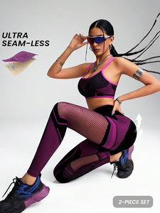 ヨガウェアセット、女性用スポーツブラ、ランニング、速乾性、耐衝撃性、副乳サポートヨガベスト、高弾性ヒップアップパンツ、メッシュ