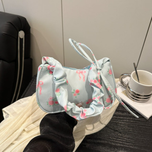 美しい新鮮な花柄の甘いプリーツハンドバッグ 2025 夏の人気の軽量でスタイリッシュな女性のショルダー脇の下バッグ