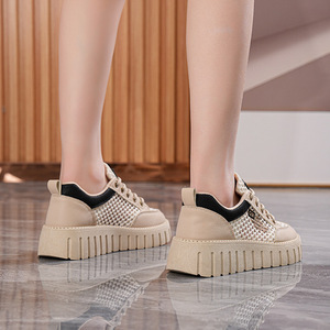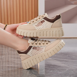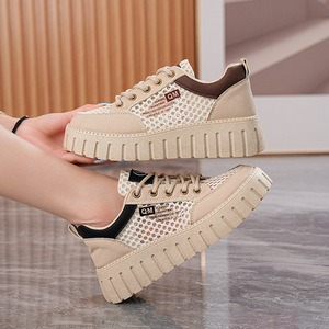 2025 夏-新しい通気性メッシュカジュアルシューズ女性のための韓国スタイル学生身長増加スポーツ白靴 HB7788