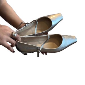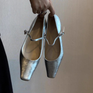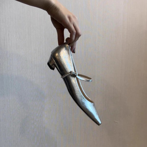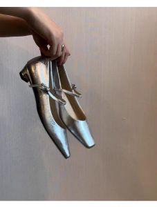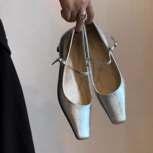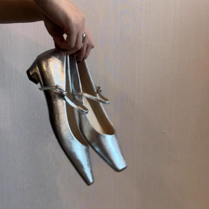 羊皮版~~法式银色小猫跟玛丽珍鞋女小方头一字带百搭气质浅口单鞋