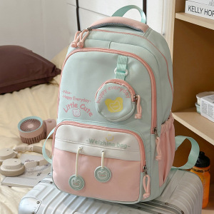 日系书包ins风简约撞色中小学生校园双肩包甜美高颜值出游小背包