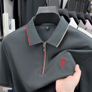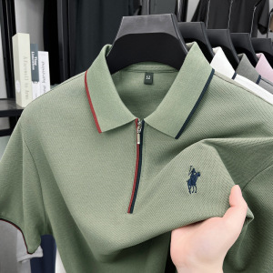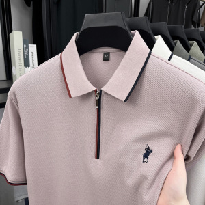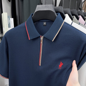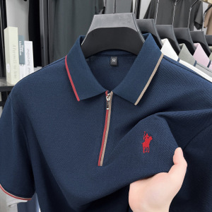 男士夏季新款半拉链时尚拼色刺绣男polo短袖中青年韩版休闲T