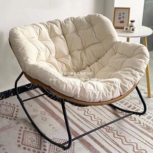 Wanteng 外国貿易供給ラベル付きロッキングチェア怠惰なソファダブル編組籐小さなアパート生地バルコニーシンプルな Wanteng