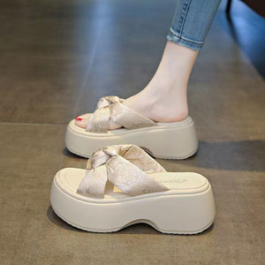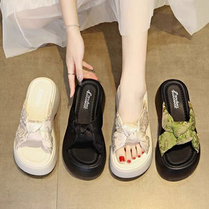 女性の夏のアウターウェアのための厚底サンダル 2025 新しいファッションスカート付き軽量滑り止め小さな人高さを伸ばすビーチシューズ