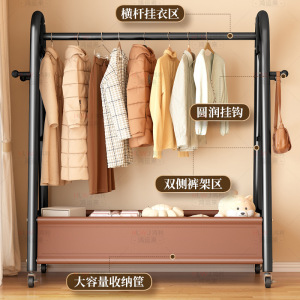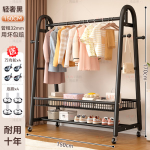 晾衣架落地家用室内卧室客厅宿舍简易加厚挂衣架可移动收纳衣帽架