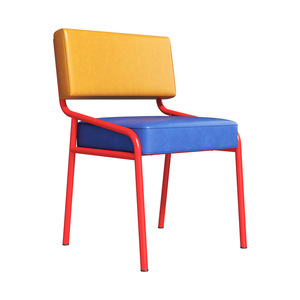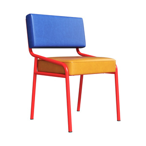 赤いアイアンフレーム+黄色の背もたれ+青いシートクッション