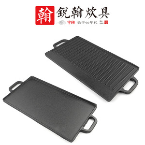 鋳鉄長方形グリルパン未塗装鋳鉄プレートストライプ鉄板焼き家庭用フライパン屋外バーベキュー両面グリルプレート