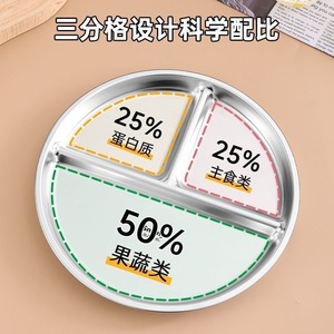 304 ステンレス鋼 211 コンパートメント脂肪低減ミールプレート家庭用ラウンド定量 3 コンパートメントミールプレート食堂落下防止定量ミールプレート