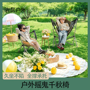 屋外折りたたみ背もたれロッキングチェアムーンポータブルオックスフォード布キャンプリクライニングチェアビーチパティオレジャースイングチェア