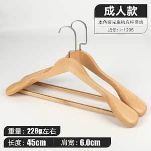 原木色扁钩方杆带防滑齿衣架