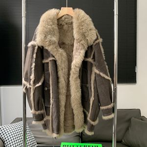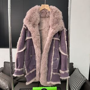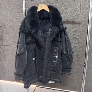 2025 新しい Haining ファーコートリアルファーラージファー襟ウサギの毛皮オールインワンミッドレングススリムコート冬