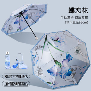 Yubao 傘、晴雨兼用、女性用日焼け止め日傘、二層ビニール抗 UV 日傘、小型でポータブルな傘