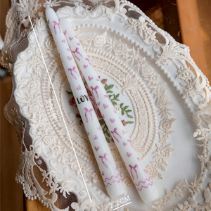 25cm印花长杆蜡烛欧式浪漫烛光晚餐婚庆节日结婚家用跨境无烟蜡烛