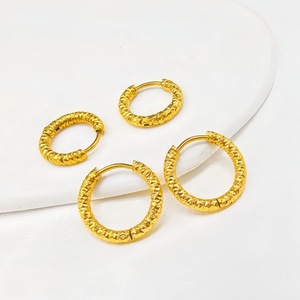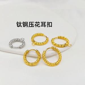 チタン鋼非退色エンボスラウンドイヤリング真空電気メッキバッチフラワー DIY イヤリングチタン鋼ファッショナブルなイヤリング