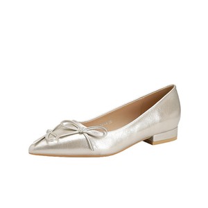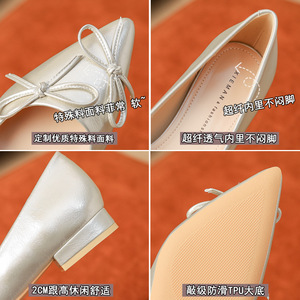 19609 平底シルバーシューズ 2025 春と秋の新しいエレガントなポインテッドトゥ浅い口のリボンローヒール多用途婦人靴