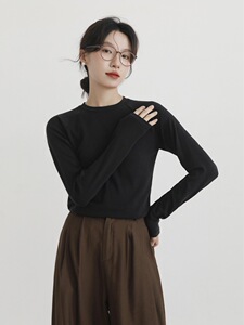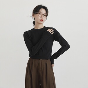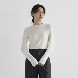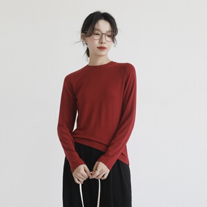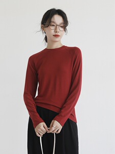 羊毛醋酸天丝长袖女秋冬修身内搭叠穿T恤插肩袖打底衫圆领针织衫