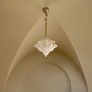 中古のフランス料理店の星型装飾シャンデリア、モダンでシンプル、高級感のあるアート、クリーム系のレトロなイタリア風アメリカ風