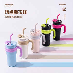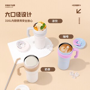 ビッグマック ダブルドリンク ミニカーカップ ストローカップ 316ステンレス鋼 ポータブルハンドル付き 保冷アイスカップ トレンドモデル