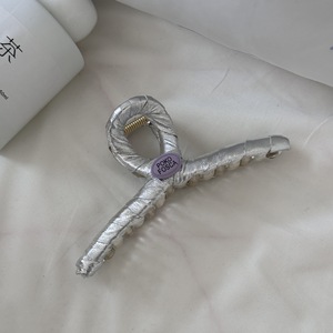 韓国の光沢のあるシルバー手巻き大型グリッパー2025夏シンプルな気質オーバルレターシャーククリップ