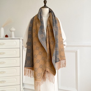 冬のコアスパン糸アクリルスカーフ女性のためのクロスボーダー新しいシンプルなジャカードストリップ模造カシミヤロングタッセルリラックスショール