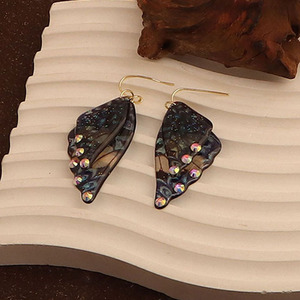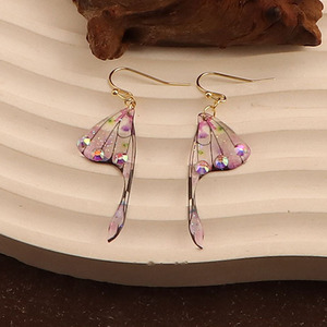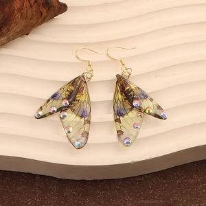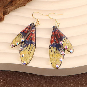 跨境爆款带钻蝉翼渐变蝴蝶翅膀耳环时尚树脂仿真蝴蝶耳钉耳饰女